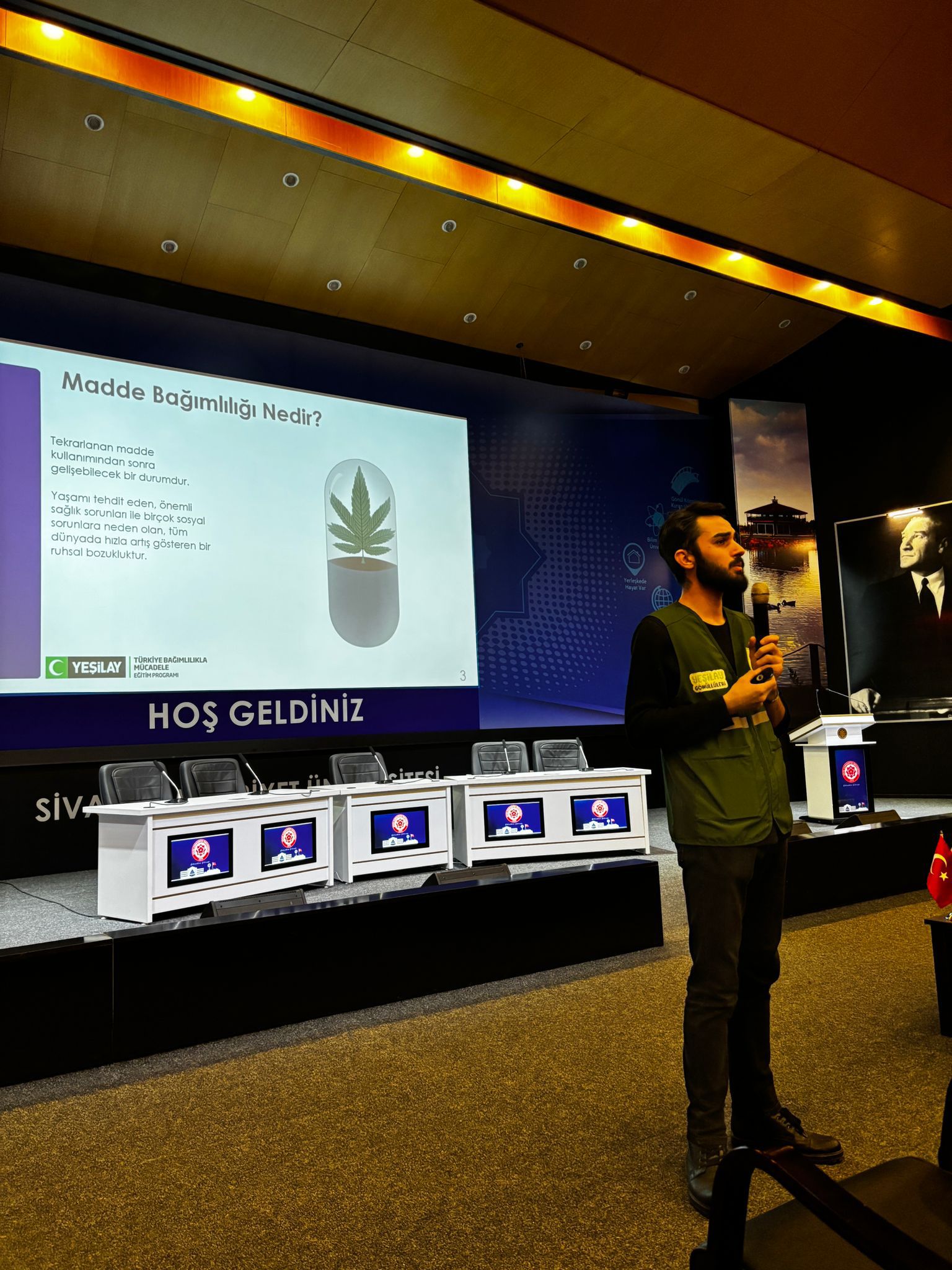 Bağımlılıkla mücadelede farkındalık oluşturmak amacıyla Sivas Cumhuriyet Üniversitesi Fizyoterapi Eğitim Kulübü (SCÜFEK) ve Genç Yeşilay Kulübü işbirliği ile TBM Akran Eğitimi – Madde ve Alkol Bağımlılığı etkinliğimizi başarıyla gerçekleştirdik. 100.Yıl Kültür Merkezinde yapılan programa Fizyoterapi ve Rehabilitasyon bölümü öğrencileri olarak etkinliğe katılım sağlayarak bu önemli farkındalık çalışmasının bir parçası olduk. Programda, Genç Yeşilay Kulübü Başkanı konuşma yaparak bağımlılıkla mücadelede gençlerin rolüne dikkat çekti. Yaklaşık 100 öğrencinin katılımıyla gerçekleşen etkinliğimizde bizlerle olan, ilgi gösteren ve katkı sağlayan tüm katılımcılarımıza teşekkür ediyoruz.