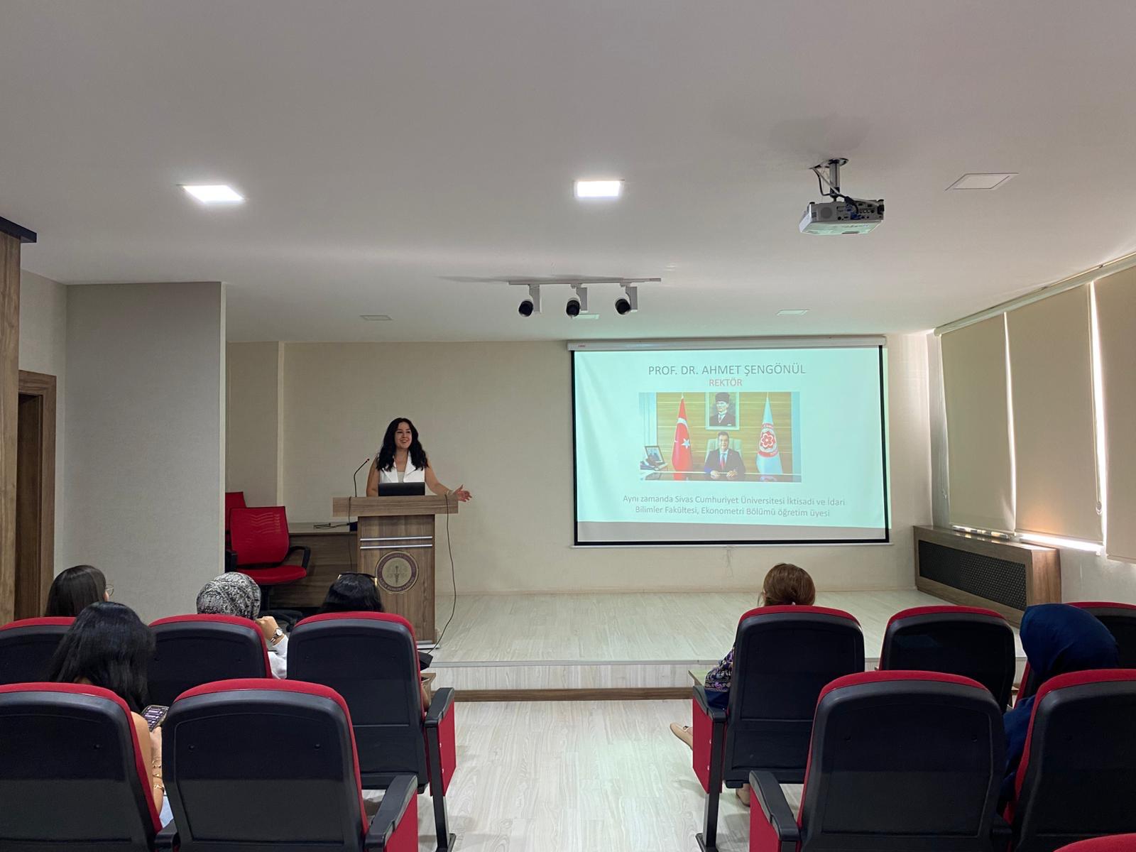 Dr. Öğr. Üyesi Sinem SARIÇOBAN tarafından yapılan tanıtım sunumuyla birlikte bölüm başkanı ve bölüm öğretim elemanları öğrencilerle bir araya gelerek dersler, eğitim planı ve akademik danışmanlık süreci hakkında bilgi verdi, bölümün imkânları, uygulama alanları ve öğrencilere sunulan sosyal olanaklar tanıtıldı.