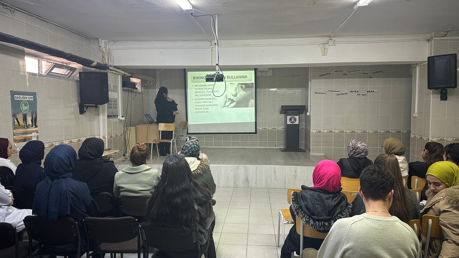 Sağlık Bilimleri Fakültesi Hemşirelik Bölümü Halk Sağlığı Hemşireliği Anabilim Dalı Başkanı Doç. Dr. Semra KOCATAŞ tarafından Halk Sağlığı Hemşireliği dersinin saha uygulamasında yer verilen Sosyal Sorumluluk Projesi kapsamında ilkokul öğrencilerinin velilerine yönelik “Tütün Bağımlılığı ve Sağlığa Olan Etkileri” konulu eğitim verildi
